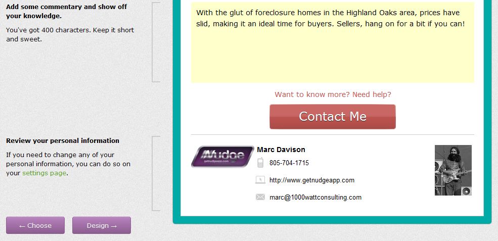 Marc Davison, Founding Partner at 1000watt Consulting told AGBeat that the goal is to allow agents to deliver what they know, beautifully. Agents often open a marketing tool and get stumped immediately about what to write or what information to leave or omit from local stat reports, and often resort to emails that work against them that are irrelevant. Davison noted that red arrows are scary, even if they imply something positive like prices dropping (see an example of a scary market report email here), so the app very specifically fixes the problem of inadvertently turning consumers off.