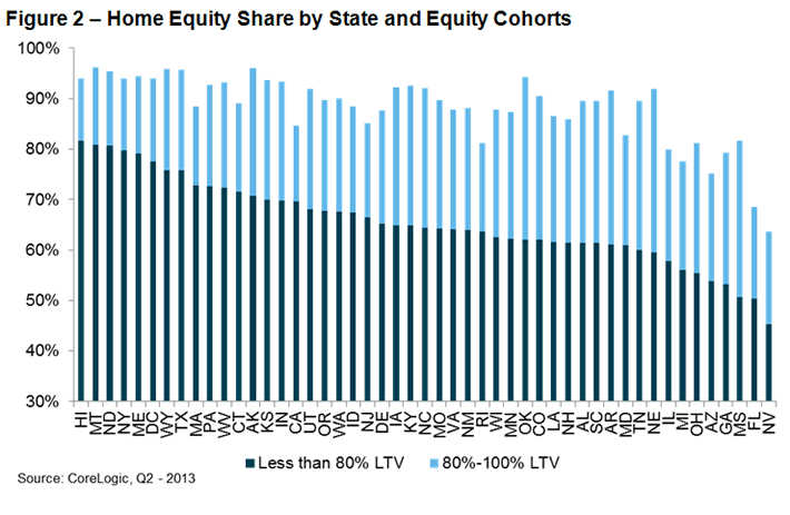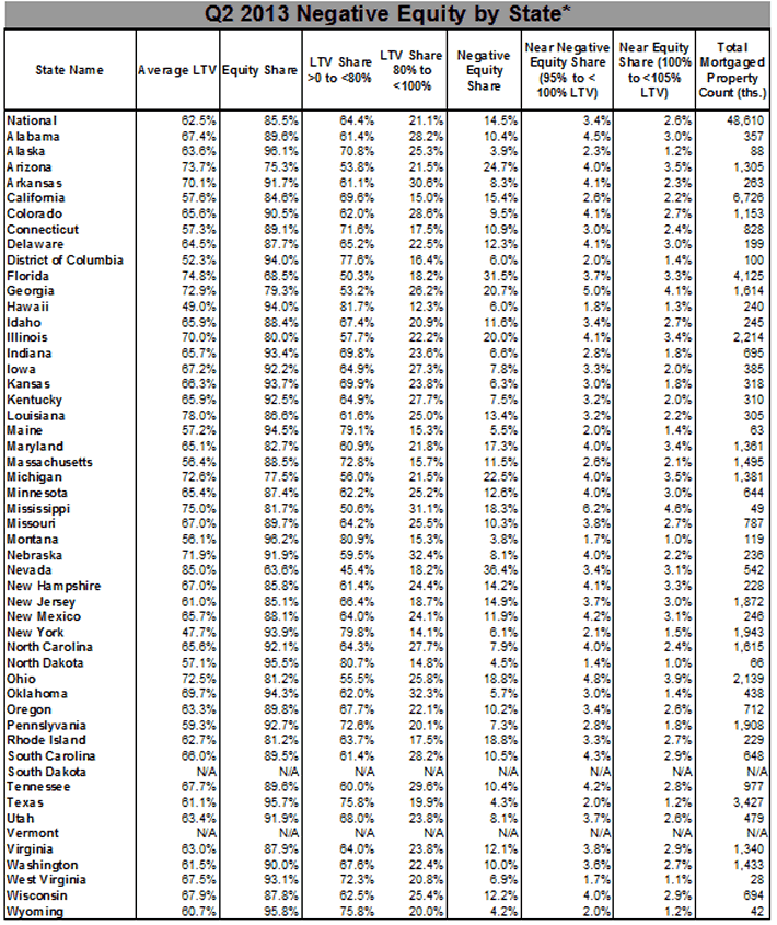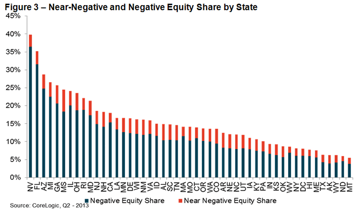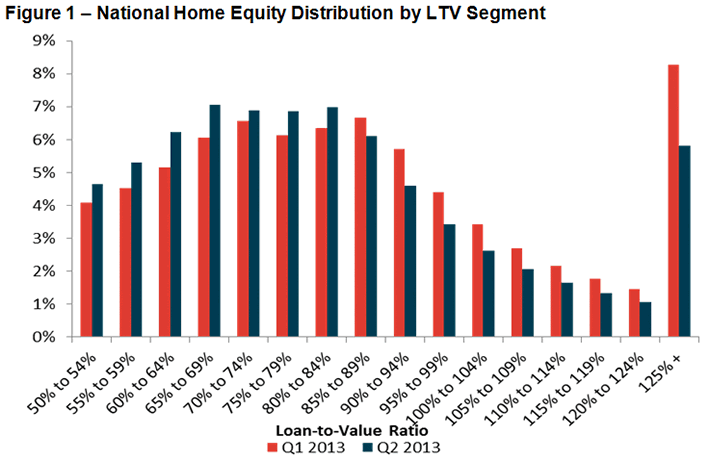 “Equity rebuilding continued in the second quarter of this year as the share of underwater mortgaged homes fell to 14.5 percent,” said Dr. Mark Fleming, chief economist for CoreLogic. “In just the first half of 2013 almost three and a half million homeowners have returned to positive equity, but the pace of improvement will likely slow as price appreciation moderates in the second half.”