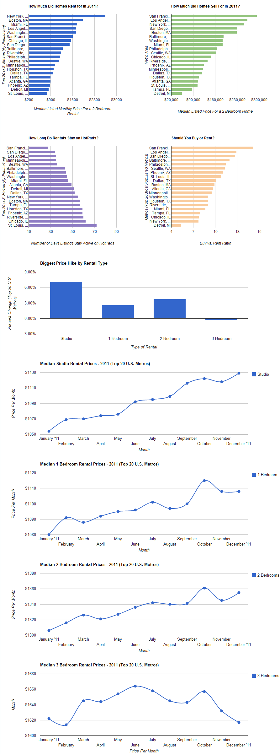 Tomorrow, HotPads will release their annual housing report, this year reporting that rents for two bedroom units rose 3.75 percent in 2011 while home sale prices of two bedroom units fell 1.83 percent in the top 20 most populated metropolitan markets.