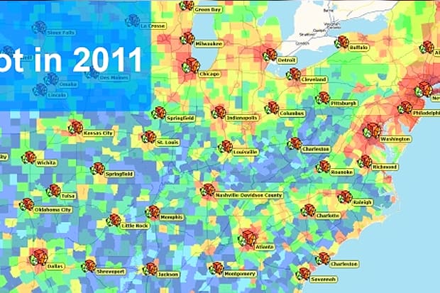 The data in this report is calculated based on the median listing price of 500,000 concurrently active rental listings on HotPads across the top 20 most populated U.S. metros. For consistency, two bedroom properties were used to determine the rental and for sale year over year price changes. The Buy vs Rent ratio is calculated by dividing a metros median house price by annual rent. Higher ratios mean it is more expensive to buy than rent a comparable home. The 20 metro areas include major cities like Atlanta, Baltimore, Chicago, Dallas, Detroit, Houston, Los Angeles, Miami, Minneapolis, New York, Philadelphia, Phoenix, Riverside, San Diego, San Francisco, Seattle, St. Louis, Tampa, Washington, DC. ‘Metro Areas’ consist of a densely populated urban core and its less-populated surrounding territories, ex: “San Francisco-Oakland-Fremont, CA” and “New York-Northern New Jersey-Long Island, NY-NJ-PA”.