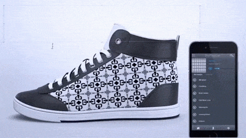 Completely customizable smart sneakers that connect to an app and display an HD image (of your choice) which you can change at anytime, could include GIFs or videos and you can design yourself. This is the future of wearables. This Kickstarter is really starting to get off the ground and projects the shoes to be available for purchase Fall 2016.