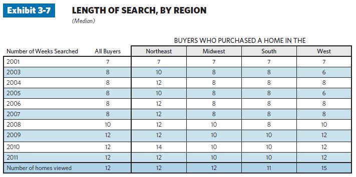 Consumers using the web as a starting point declined this year from 91 percent to 88 percent and we recently reported that home buyers now spend 12 weeks shopping for their home and tour an average of 12 homes. This year, more than half of all buyers were extremely satisfied with the home buying process, but what is most exciting is that buyers that search for a home on the web are more likely to use an agent than those who don’t and nearly half of all buyers find online the home they purchased.