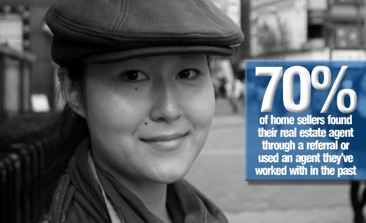 In the National Association of REALTORS® (NAR) 2011 Profile of Home Buyers and Sellers, NAR found that 70% of home sellers found their real estate agent through a referral or used a REALTOR® they’ve worked with in the past.