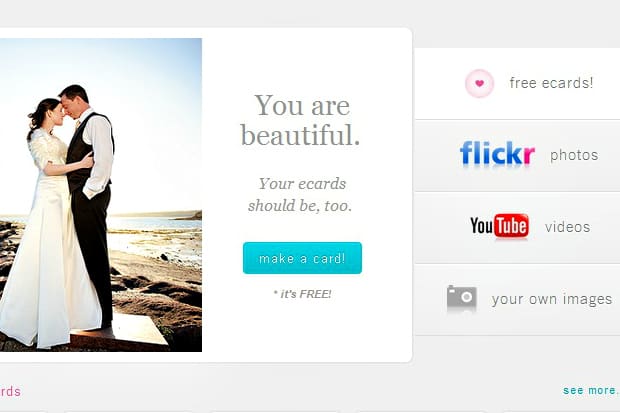 CardKarma offers free ecards, but what sets this ecard website apart is that you can use one of their template ecards or (and this is the cool part) you can use a YouTube video, Flickr image or a photo you upload yourself and the text and its appearance is completely customizable.