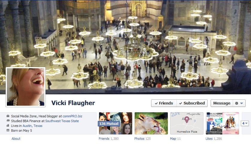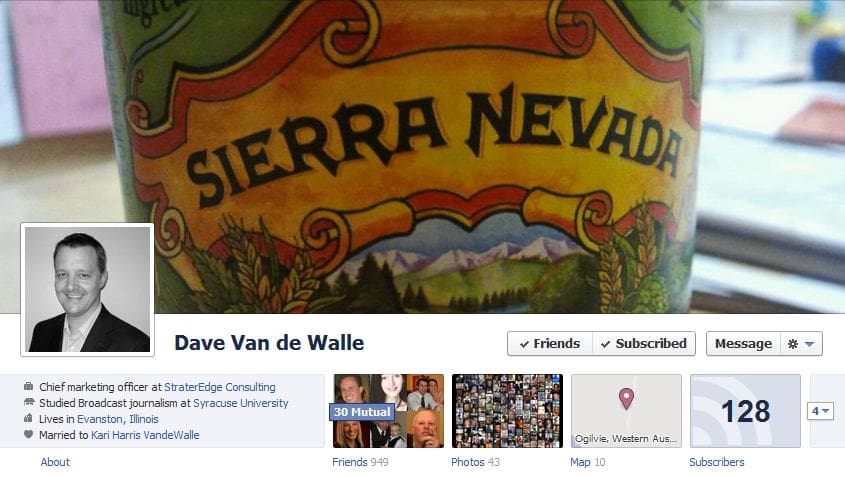 Last fall, before the Facebook Timeline feature went public, AGBeat gave you a sneak preview of 50 Facebook Timeline Covers as examples and shared best practices, and now that the feature will be the default for all users, it is time for the procrastinators to begin thinking about what kind of Cover Photo they will use as the header for their Facebook profile as seen above.