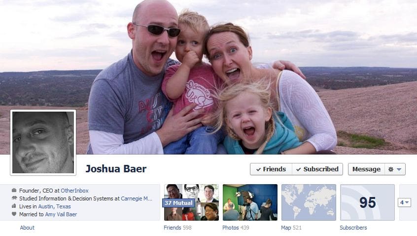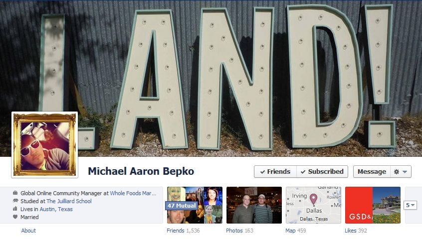 The 50 examples below are all very different with some featuring family, others their city, their work or something they are interested in, even a celebrity in one case. Each one showcases these individuals’ personalities. We suggest playing with the feature, and changing out your picture from time to time – take a look below for inspiration (especially clever Cover Photos like Josh Nekrep’s):