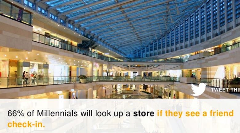 - 66% of Millennials will look up a store if they see a friend check-in.