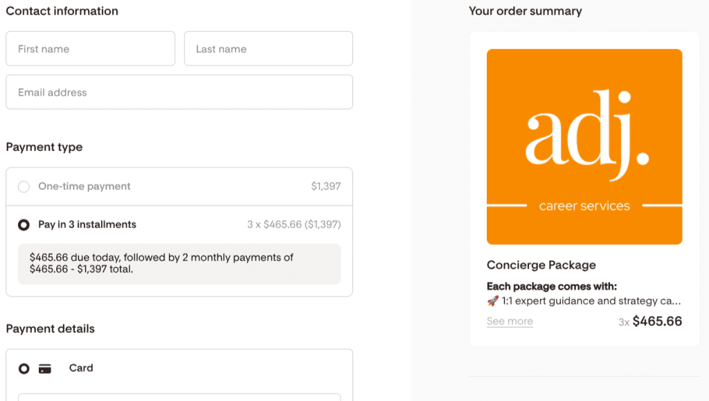 We work hard to humanize this process, so resume package payment plans are automatically available at checkout.