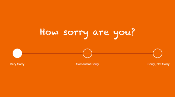 The site offers examples of common (or not-so-common) workplace goofs, from the jovial “made a joke about dongles” to the less hilarious “stored passwords in plain text”; it then asks, on a scale of “not sorry” to “very sorry”, how apologetic you are. Finally, based on your feedback, the site generates a series of pre-written tweets as guidelines for how to react to the public (or as shameless plagiarism material, depending on your ethics).