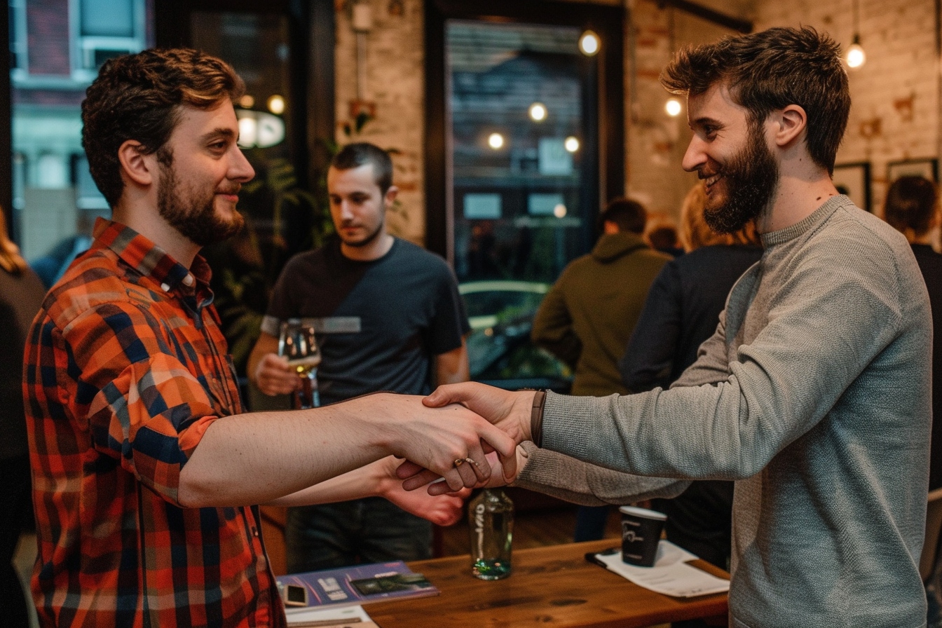 Sidenote: We worked hard to create ridiculous AI art to embody the awkward nature of networking events. A visual representation for folks who otherwise don’t feel put off by interacting with strangers… Don’t look too closely at it, you’ll start to FEEL things…