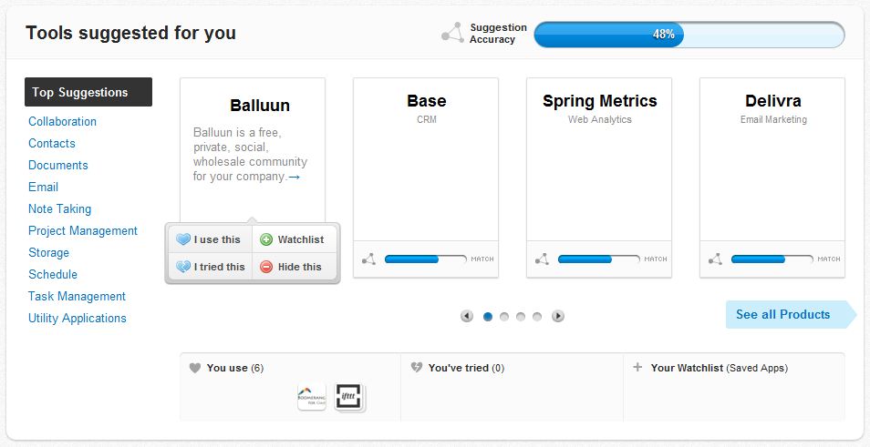 What is most intriguing about the service beyond its simple drag and drop methods that require literally no tech savviness is that users sign in with LinkedIn and automatically see the apps people they are currently connected with are using, along with their notes as to why they use it or even why the don’t like a particular product.