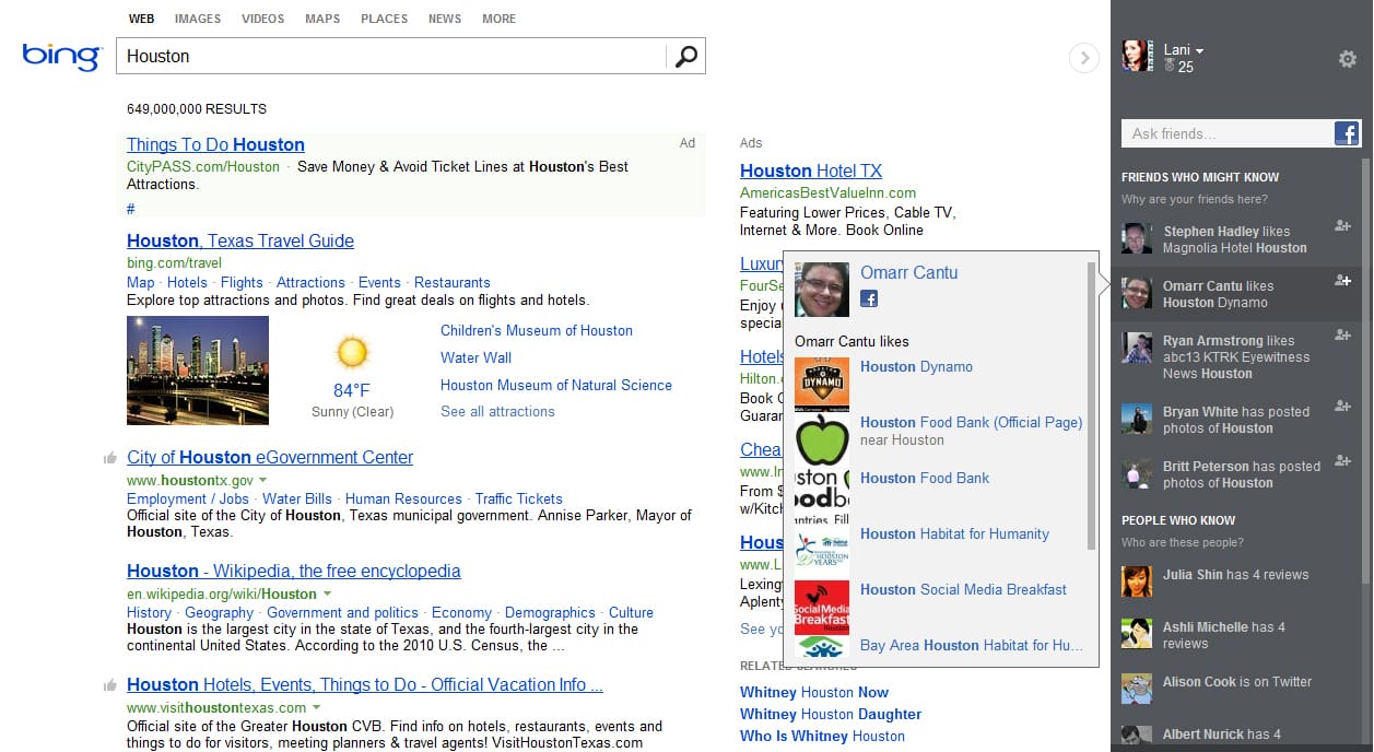 The company launched a sneak peek last month of the updates which showed social integration with Facebook, Twitter, Google+, LinkedIn, Quora, Foursquare, and other social networks, giving them the clear competitive advantage as Google continues emphasizing their own social network.