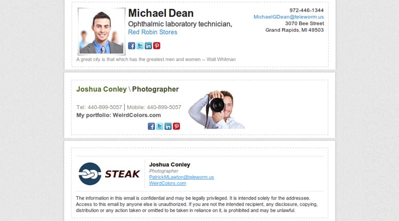 The platform supports Gmail users with Chrome or Firefox browsers, as well as, iPad, iPhone, and iPod Touch users. This platform is primarily focused on Gmail, but you can use their SMTP gateway with other email providers. Also, you can choose whether or not to have your social media updates included on an email-by-email basis, which is handy if you want your friends to see your Facebook updates, but not potential employers. To see what these signatures can look like, they have examples in a gallery.