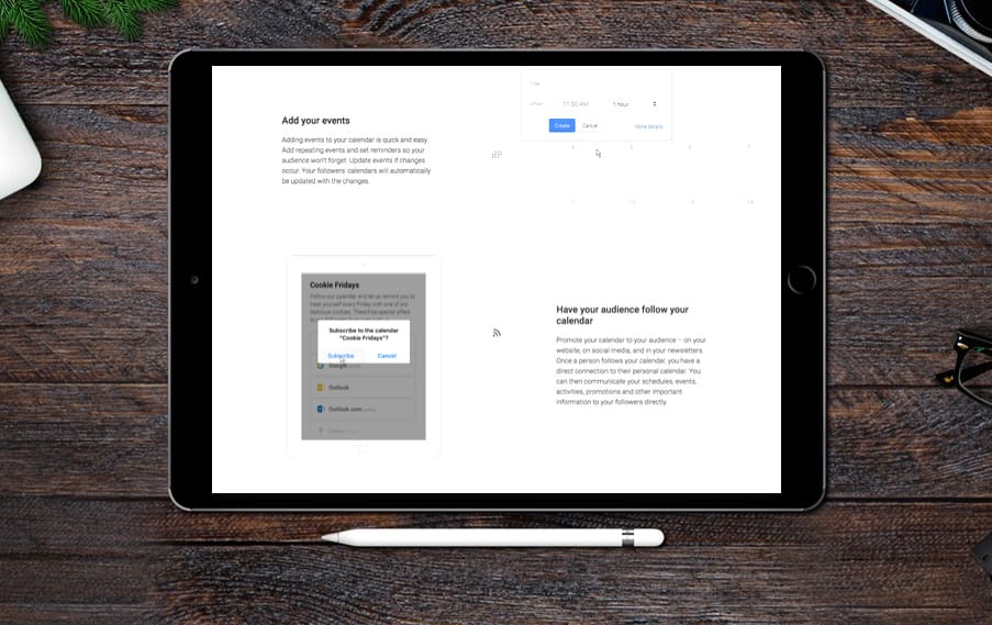 This tool works in a series of steps: first, you create your calendar. You can adjust settings and control who manages the calendar, as well as what you want to know about your followers. In this step, you can develop an unlimited number of calendars that users can follow.