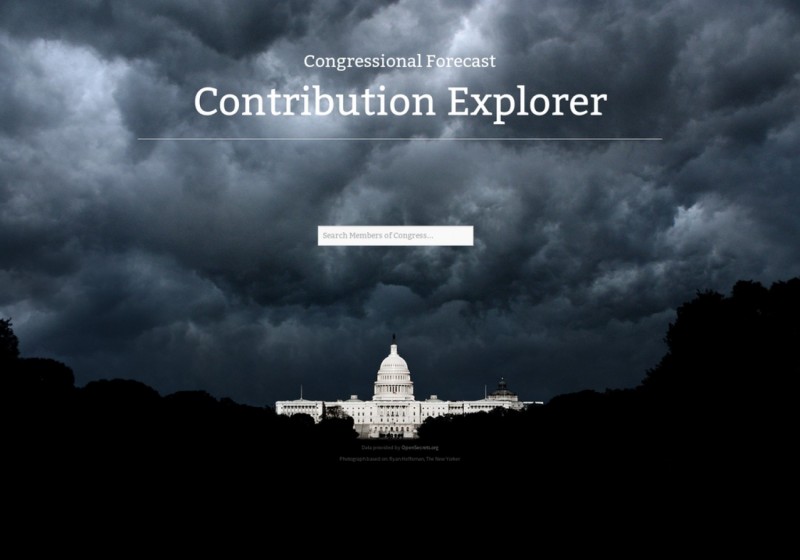 The Contribution Explorer was set up to be the initial step in a larger project called Congressional Forecast, which will be a suite of tools to investigate the influence of corporate money in Washington. It is inspired by the organizations OpenSecrets, Maplight, and the Sunlight Foundation, all of which will aim to debunk the nuts and bolts of our political system. As the project progresses, they hope to investigate hearings and other activities, track donation dates so you can view them across a timeline, and get an overview of which industries are contributing the most to political campaigns.