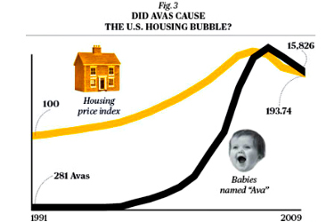 Bloomberg.com took a swipe at the art of putting two unrelated facts together and proclaiming correlation or causation: