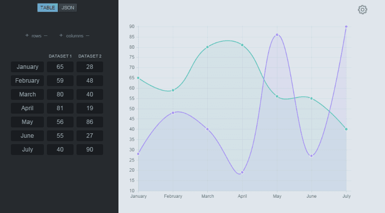 For example if you need a yearly overview chart, you’ll enter each month in a button field and all your other variables and Tinychart does all the generating work for you. This is so much faster than trying to align and perfect all those columns and rows on your own. Especially if you’re already under pressure for a presentation.