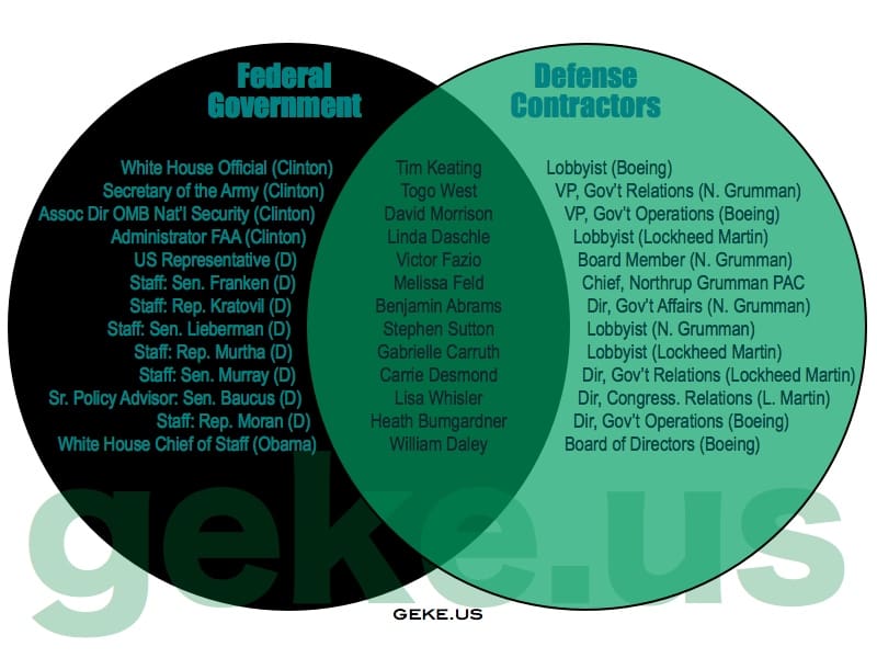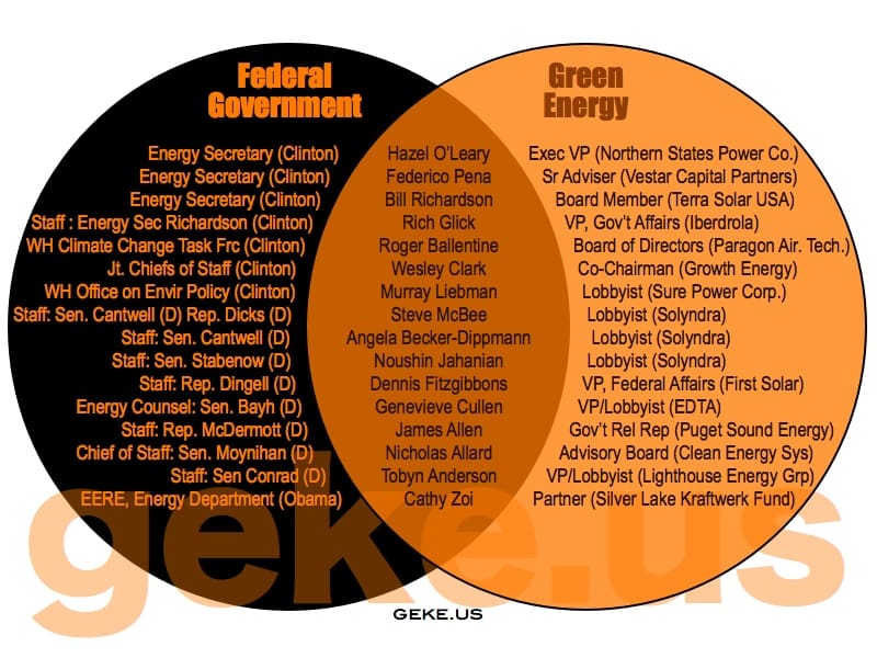 Geke.us has opted to ignore party lines and has charted how cronyism is alive and well on all sides of the aisle, in all branches and at all levels. Charting companies like GE and Enron and industries like oil and pharmaceuticals, the following charts reveal the connections between big government and big business (click any image to enlarge).
