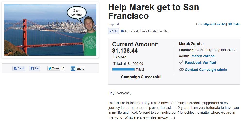 Below are some samples of successful campaigns on Crowdtilt, click any image below to visit the live campaign site: