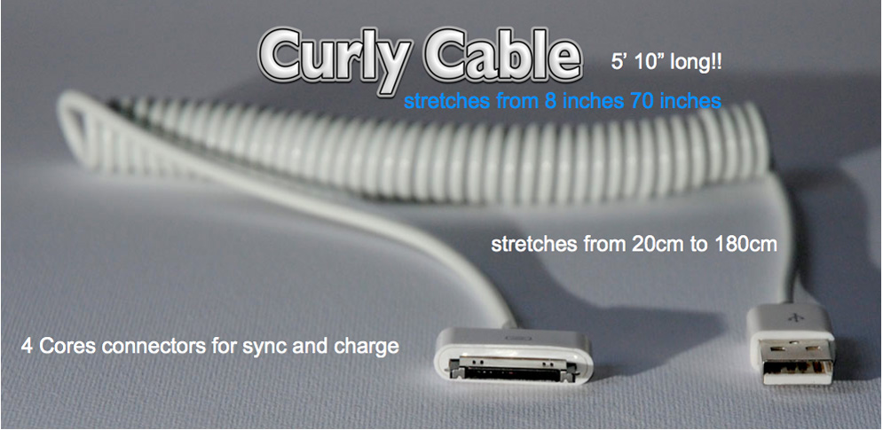 All iPhone and iPad users know that battery life is a problem and for the most devoted device users, an afternoon without your device can be not only upsetting but unproductive. As a throwback to the spiral cords on phones of yesteryear, Curly Cable connects iPhones and iPads to the charger while solving the problem of the dramatically short charger cord that plagues device users and also addresses the problem of cords that get tangled and knotted.