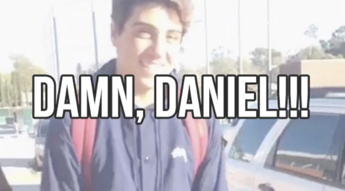 In a compilation of Snapchat videos, a high school student films his friend, Daniel, arriving to school over the course of a few different days. He documents Daniel’s different wardrobe choices while continuously stating, “Damn, Daniel!” A few videos show Daniel wearing white Vans in which his friend, Josh, remarks, “Back at it again with the white Vans!”