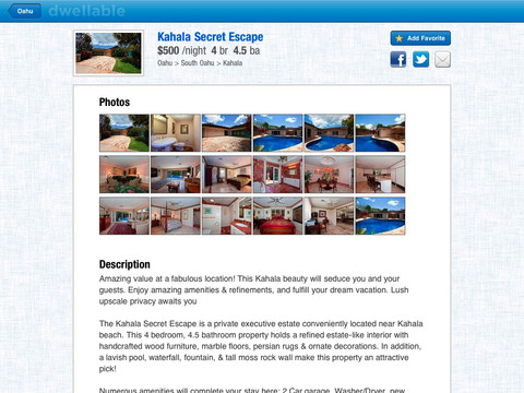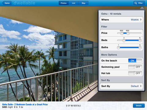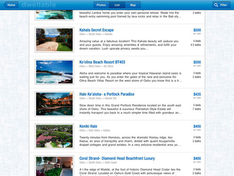 Vacation rental site, Dwellable.com today launched their new iPad app which is complete with large, high resolution, retina-ready photos for full screen viewing on the new iPad coming out on Friday. One of the company’s founders developed this app and was also the developer of the original and very successful Urbanspoon iPad app.