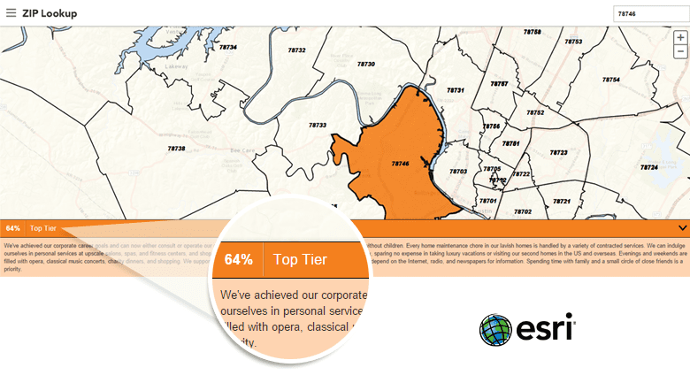 With the help of such descriptive information from Esri Data, your business can make a smart decision about whether or not a particular zip code is a good fit for your company.