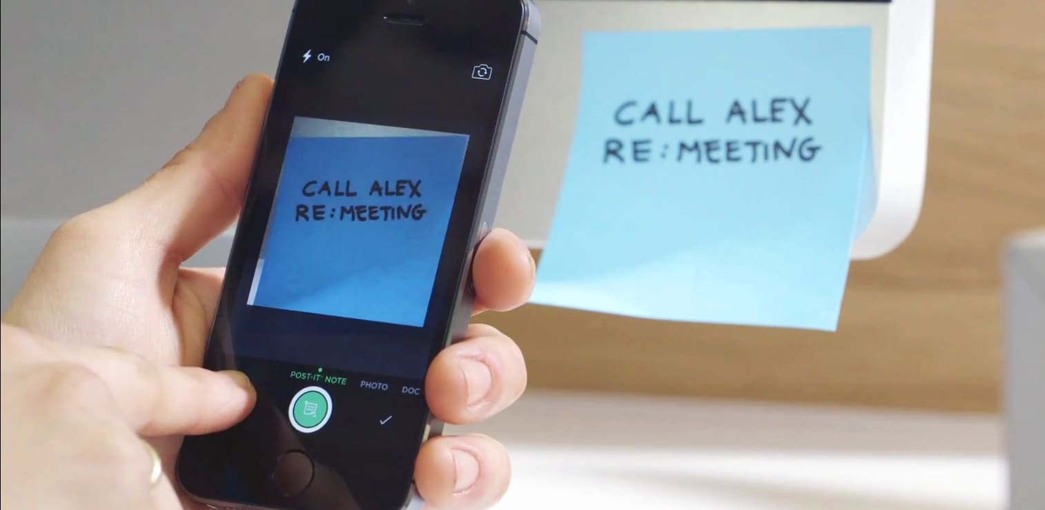 Post-it® Notes come in four colors (Electric Yellow, Neon Pink, Electric Blue, or Limeade), which is recognized by the Evernote app, but they go beyond just shoving a fuzzy image into a digital file, no it corrects the tilt, it boosts the contrast, and it crops it down to just the writing so anything photographed outside of the relevant content is scrapped.