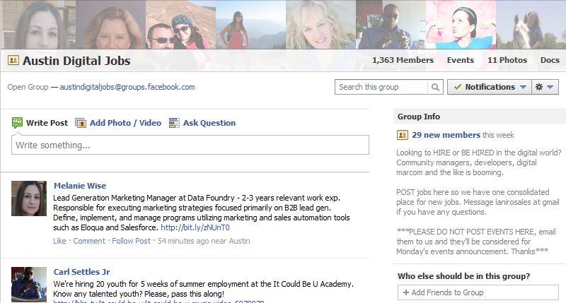 Recently, Facebook Groups, both public and private, received an overhaul with functionality changes as well as aesthetic changes, and it has created an opportunity for Groups to stand out in the Timeline-esque redesign. The new design makes navigation easier, as members, photos, events and docs are listed right up top, front and center, and any group member can indicate what the group should be posting via the sidebar.