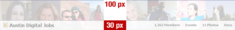 There are many creative photos you can upload, even custom designed information about the group, its members, your company, or the topic at hand. To stay consistent with the size of the profile photos, simply upload an image that is 800 pixels wide by 100 pixels tall, keeping in mind that the bottom 30 pixels will be covered by information: