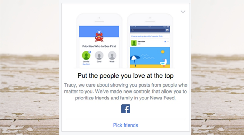 “Put the people you love at the top: we care about showing you posts from people who matter to you. We’ve made new controls that allow you to prioritize friends and family in your News Feed.”