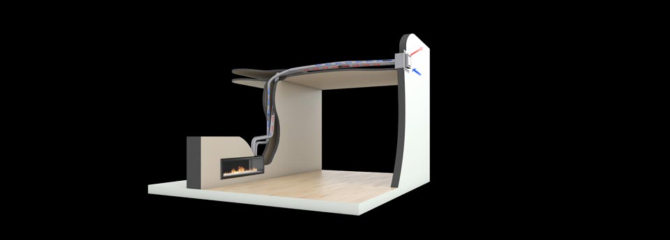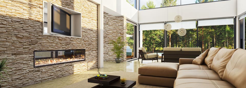 The new DX1500 gas fireplace from Escea, featuring connectivity to iPhones and Android devices via WiFi which can be used as a remote control, as well as high efficiency and the option for a single or double sided, see-through fireplace.
