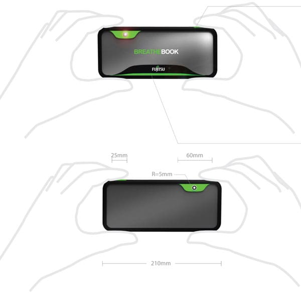 The Breathebook has a flexible display, and the ability to work with a set of two cameras. It also takes advantage of inductive charging which uses an electromagnetic field to transfer energy between a charging station and the device.