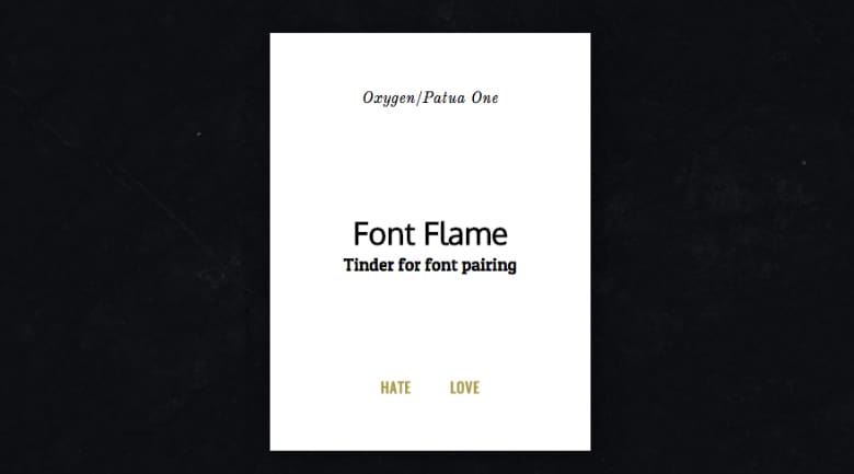 Font Flame is a new and more convenient way to pair fonts, mimicking the popular dating match site Tinder. With a similarly easy to use interface, Font Flame uses Google Font Library to provide all of the different options, and randomly pairs fonts that you normally wouldn’t envision together. Much like the dating app, the user is shown each particular pairing and given the simple choice between “love” or “hate”, allowing a swift response. Anything you hate is ditched and forgotten, while the ones you love are saved for later access.
