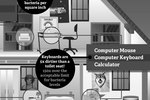 I usually disinfect my desk and keyboard every few days. At home I use a MacBook and I have the keyboard covered by a bacterminator.com antibacterial cover, same with my iPhone and iPad since I use them often and put them down on all sorts of surfaces.