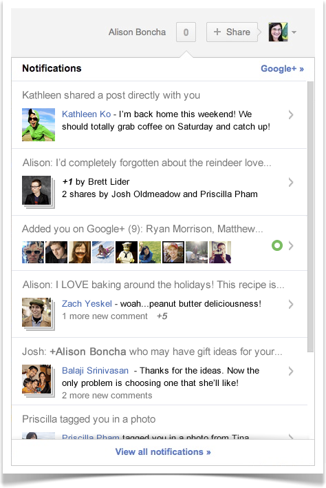 Notifications have gotten a face lift; now rather than having to go through a post to review your notification, you get a preview in the notifications box. Now, rather than seeing “Betty White +1’d your post,” you will see “Betty White +1’d Top 5 ways to grow muscles overnight.”