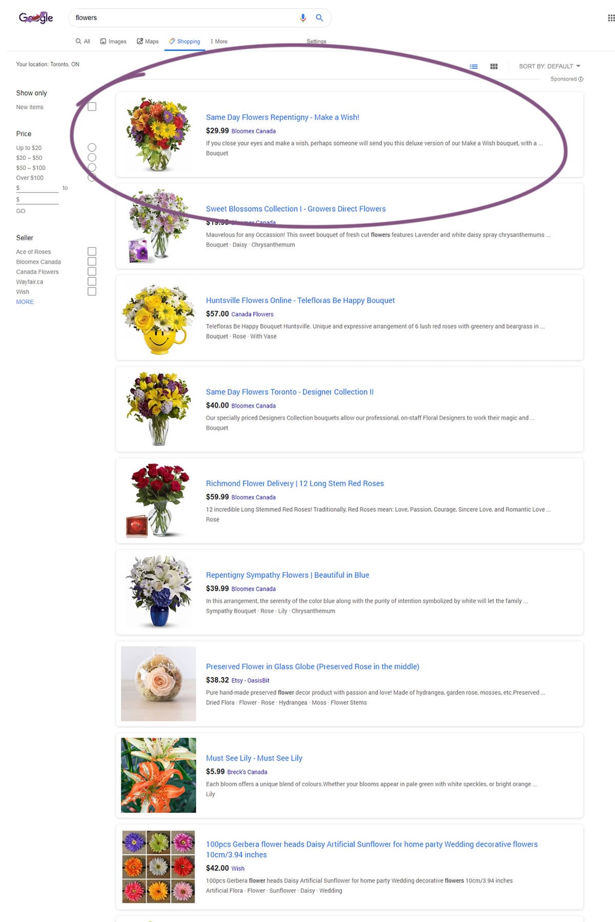 At the time of this writing, you can see the new view for yourself by searching Shopping results for “flowers.” But what’s the takeaway for you?
