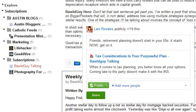 With the launch of Google’s new social network, Google+, the ecosystem at Google has changed to integrate and streamline all of their services so that they function together rather than separately. In this spirit, Google has announced a faster, sleeker, more minimalistic design for Google Reader. Several features have changed, most notably with now RSS items can be shared, as “sharing” has gone away yet is substituted with Google+ integration. Now, from the feed reader, a user can +1 and prepare a status update about their chosen item they wish to share and it is visible to their Google+ network rather than just fellow RSS subscribers.