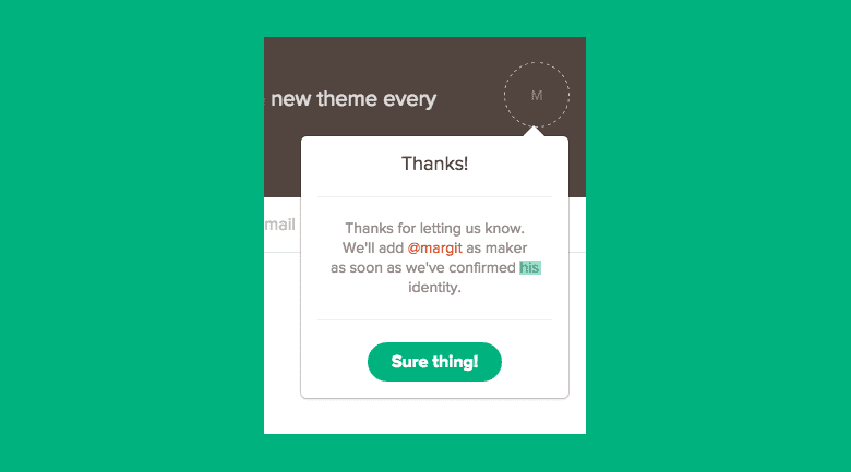 A photo of the pop-up was soon posted on twitter with a comment implying that Product Hunt assumes all makers are men.