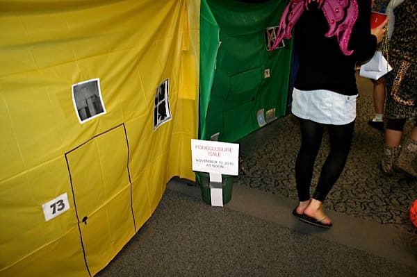 Not only did the firm throw the party where employees dressed up as homeless people, the homeless people are drinking beer in a paper bag sleeve and can’t spell (one sign says “will worke for food”). Foreclosure is no joke, and many law firms have taken homes away from people that they shouldn’t have, and even for the rightful foreclosures of people who just couldn’t keep up, it is no laughing matter. Foreclosures hurt families, the neighborhood, and the economy, and mocking anyone who has become homeless of your own doing is sickening.
