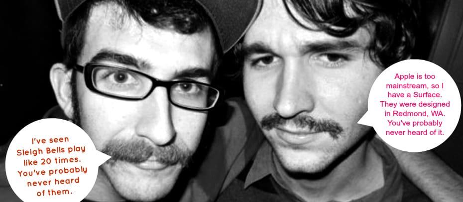 Now, it seems like people are trying to be hipsters. They go out of their way to acquire rare records of crappy bands and pride themselves on loving films that no one has ever heard of, snuffing the mainstream every chance they get. You still eat organic quinoa? Wow. I’ve been really into smoking my own tofu faux-beef jerky and then melting it into a jam that I spread on recycled cardboard. Wheat Thins? No, everybody buys Wheat Thins. Cardboard is the new cracker. Trust me.