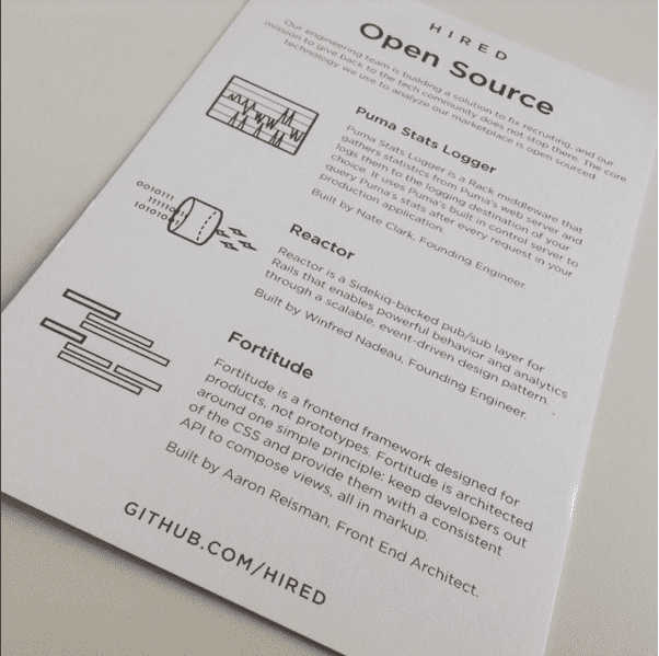 Hired is well known for giving back to the tech and recruiting communities by making their technologies open source for anyone to use and build on: