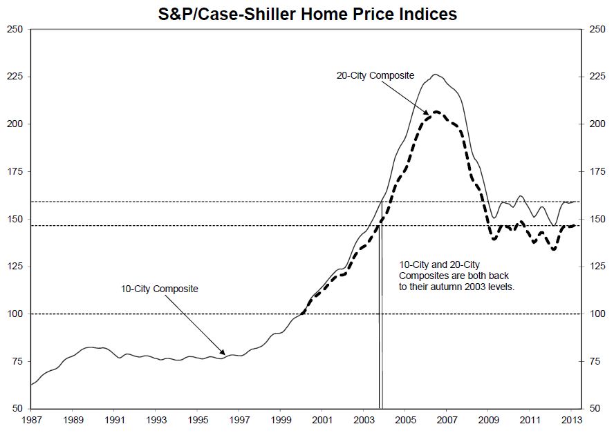 “Home prices continue to show solid increases across all 20 cities,” said David M. Blitzer, Chairman of the Index Committee at S&P Dow Jones Indices. “The 10- and 20-City Composites recorded their highest annual growth rates since May 2006; seasonally adjusted monthly data show all 20 cities saw higher prices for two months in a row – the last time that happened was in early 2005.”