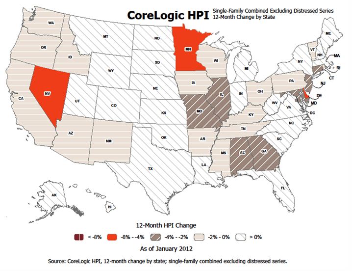 National home prices, including distressed sales, declined on a year-over-year basis by 3.1 percent in January 2012 and by 1.0 percent compared to December 2011, the sixth consecutive monthly decline, according to the CoreLogic January Home Price Index (HPI) report.