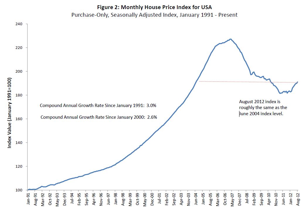 According to the FHFA, their data is created by analyzing “the purchase prices of houses with mortgages owned or guaranteed by Fannie Mae or Freddie Mac to calculate the monthly index,” making it a reliable indicator, but not necessarily a complete picture, despite Fannie and Freddie guaranteeing or owning the majority of American mortgages.