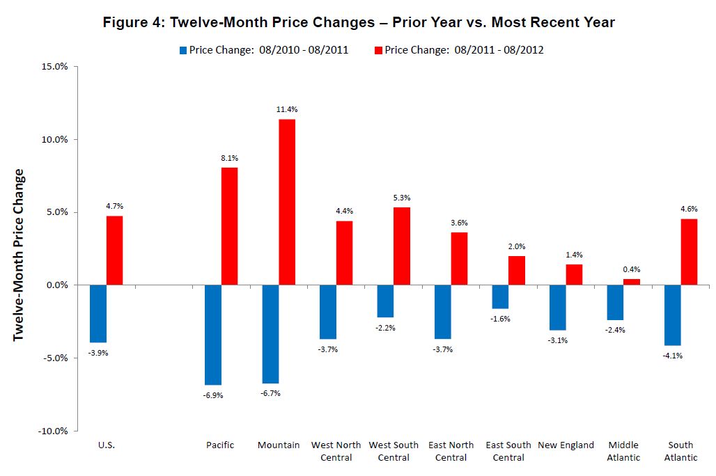 According to new data from the Federal Housing Finance Agency (FHFA), home prices rose for a sixth consecutive month in August, increasing 0.7 percent, marking a 4.7 percent annual increase over August 2011 levels, which is the largest year over year jump in six years.