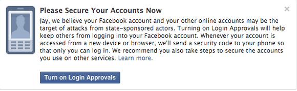 As of this fall, the platform informed facebookers that they would begin sending alerts to users if they suspect that an account has been hacked by a government entity. This measure has been taken because hacks of this nature tend to be more advanced. The warning will only be used if FB security professionals have strong evidence of a “government sponsored” attack.