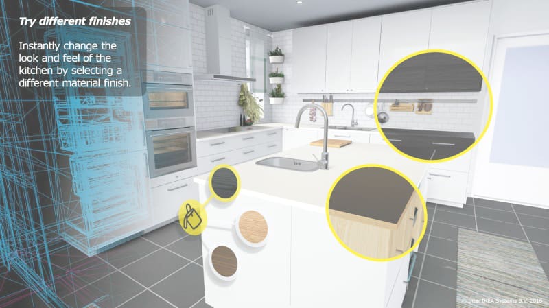 Using the app, shoppers can test different colors, finishes, countertops, and cabinets, designing their dream kitchen, then walking around inside of it in virtual reality.