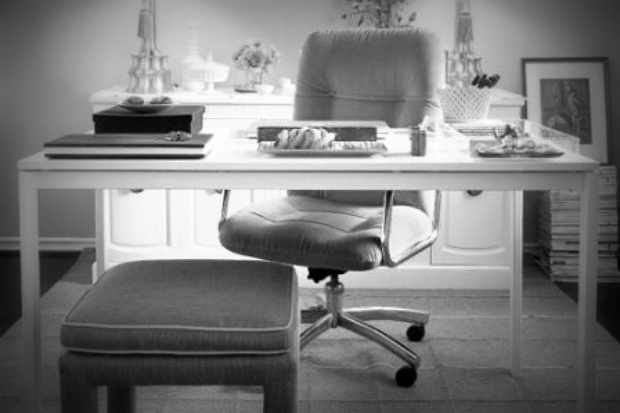 Creative use of fabrics, mix-and-match furniture, and even folding tables can be made chic with a groovy chair and chandelier. With little effort, time, money or space, these offices shown below act as an inspiration for home offices everywhere, even on a budget: