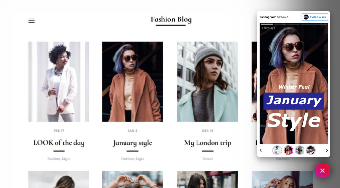 Drive awareness and build loyalty by spreading the wonder of your Instagram Stories far and wide with the Stories Widget. Simply log in to Facebook to get the widget, then sync your Instagram Stories stream.